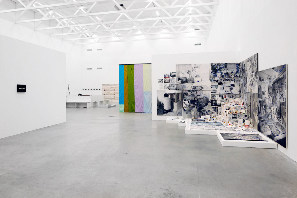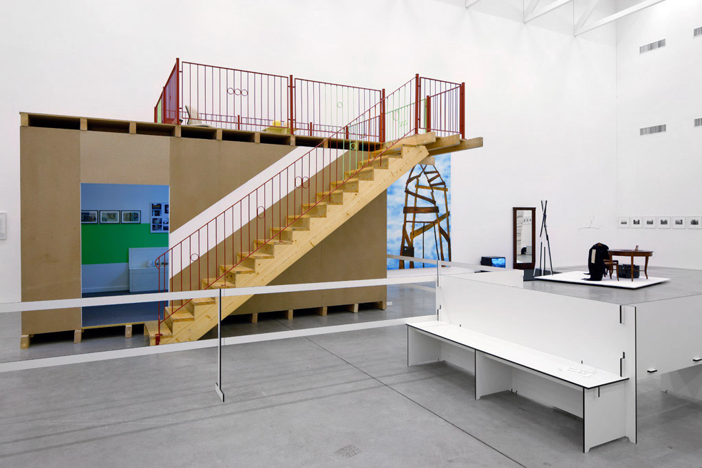 „“squatting“ inszeniert das wechselseitige Verhältniss des historisch aufgeladenen Außenraums mit dem neutralen Ausstellungsraum, den schlichte weiße Zäune in drei Segmente unterteilen. Die Besucher müssen die Ausstellung durch drei Eingänge betreten und wieder verlassen, um die gesamte Ausstellung zu erleben. Dadurch verschränken sich der Raum der Kunst (innen) und der Raum der politischen Erinnerung (außen) in der Bewegung des Besuchers.“