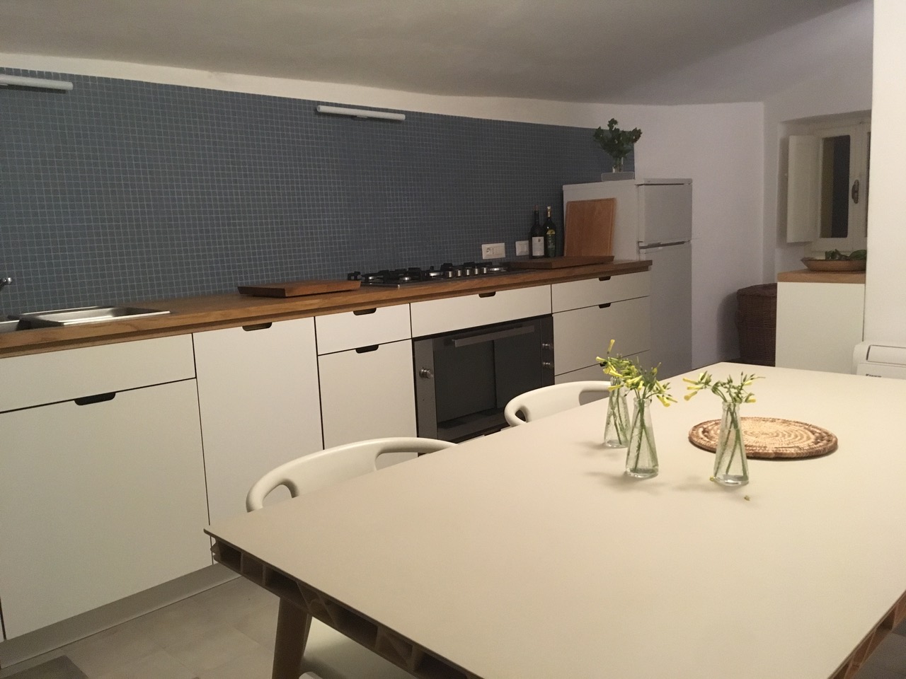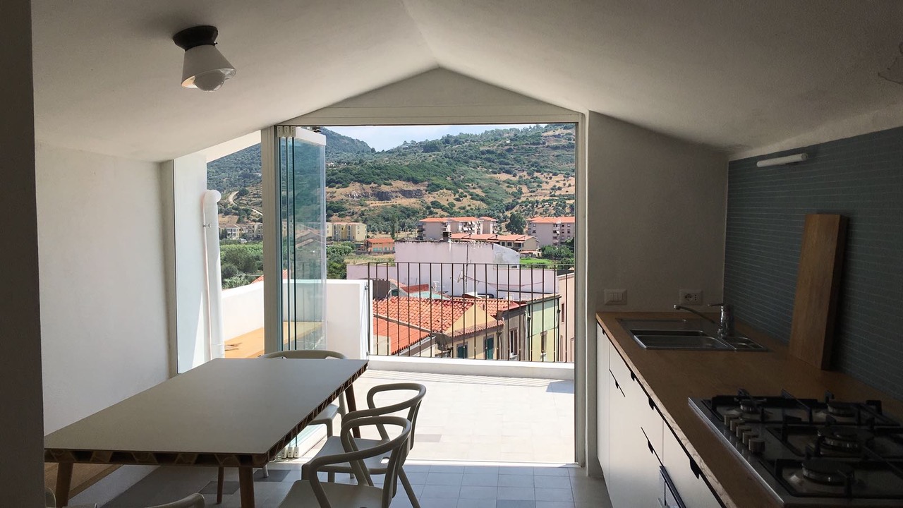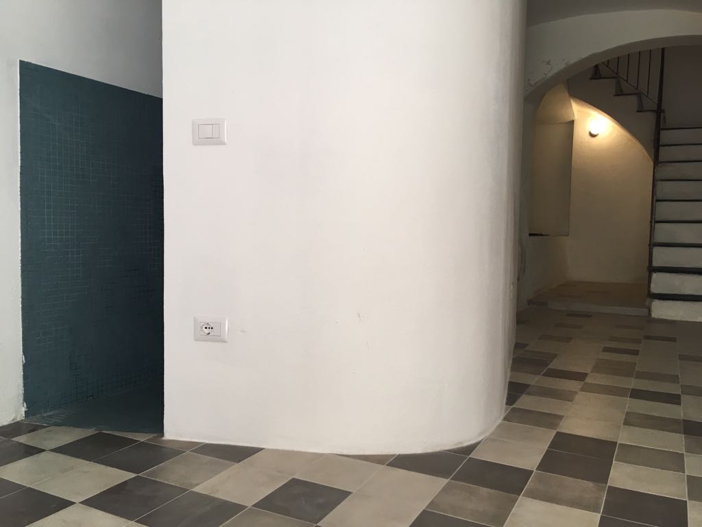 Bei dem ca. 400 Jahre alten Gebäude handelt es sich um ein Turmhaus, ein „casa al torre“, mit 5 Stockwerken und zwei Ausgängen auf Gassen unterschiedlicher Höhe. Die Nutzungen verteilen sich, aufgrund der schmalen Gebäudestruktur, geschossweise. 2 Schlafzimmer, ein Wohn/Schlafzimmer, 2 Bäder und eine Wohnküche mit angeschlossener Dachterrasse mit Blick auf Berge, Stadt und das Temo-Tal.