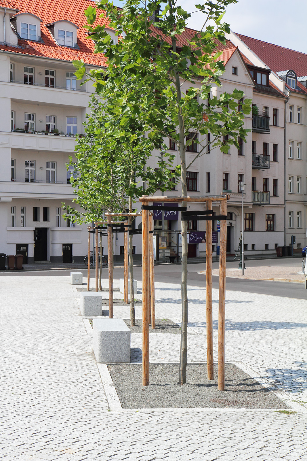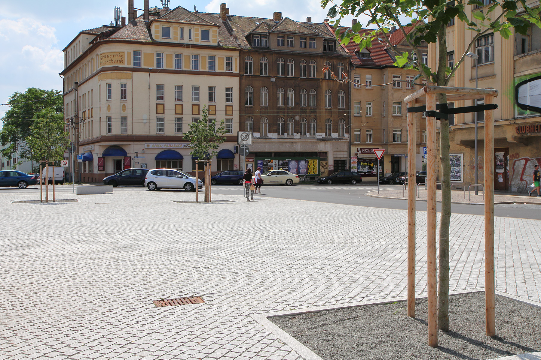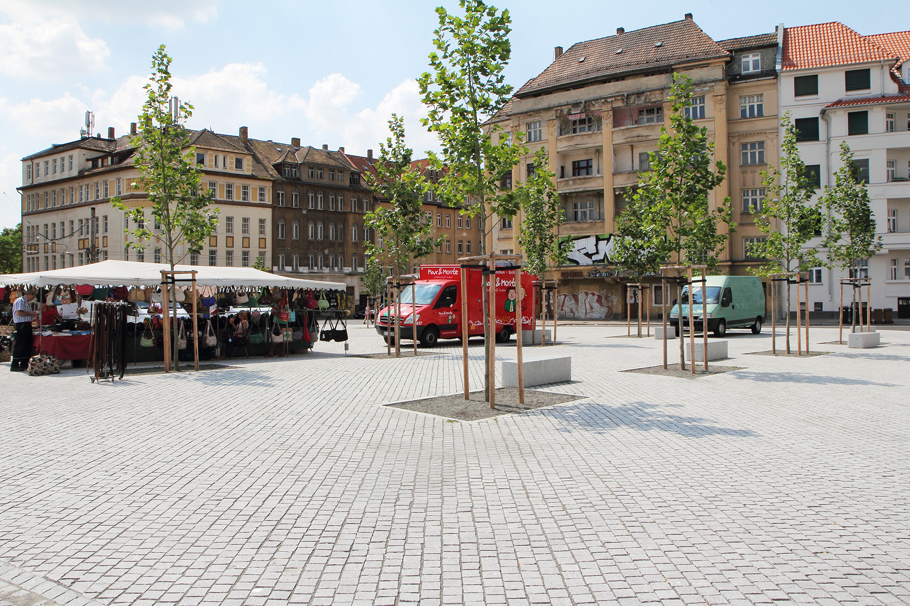 Die Eröffnung war am 02.12.2013 – der Huygensplatz in Leipzig ist fertiggestellt. 2010 fand der Arbeitsworkshop „Magistralenentwicklung Georg-Schumann-Straße“ statt und der Entwurf von quartier vier wurde zur Umsetzung empfohlen. Nun ist er fertig! Nur die Bäume müssen noch wachsen.