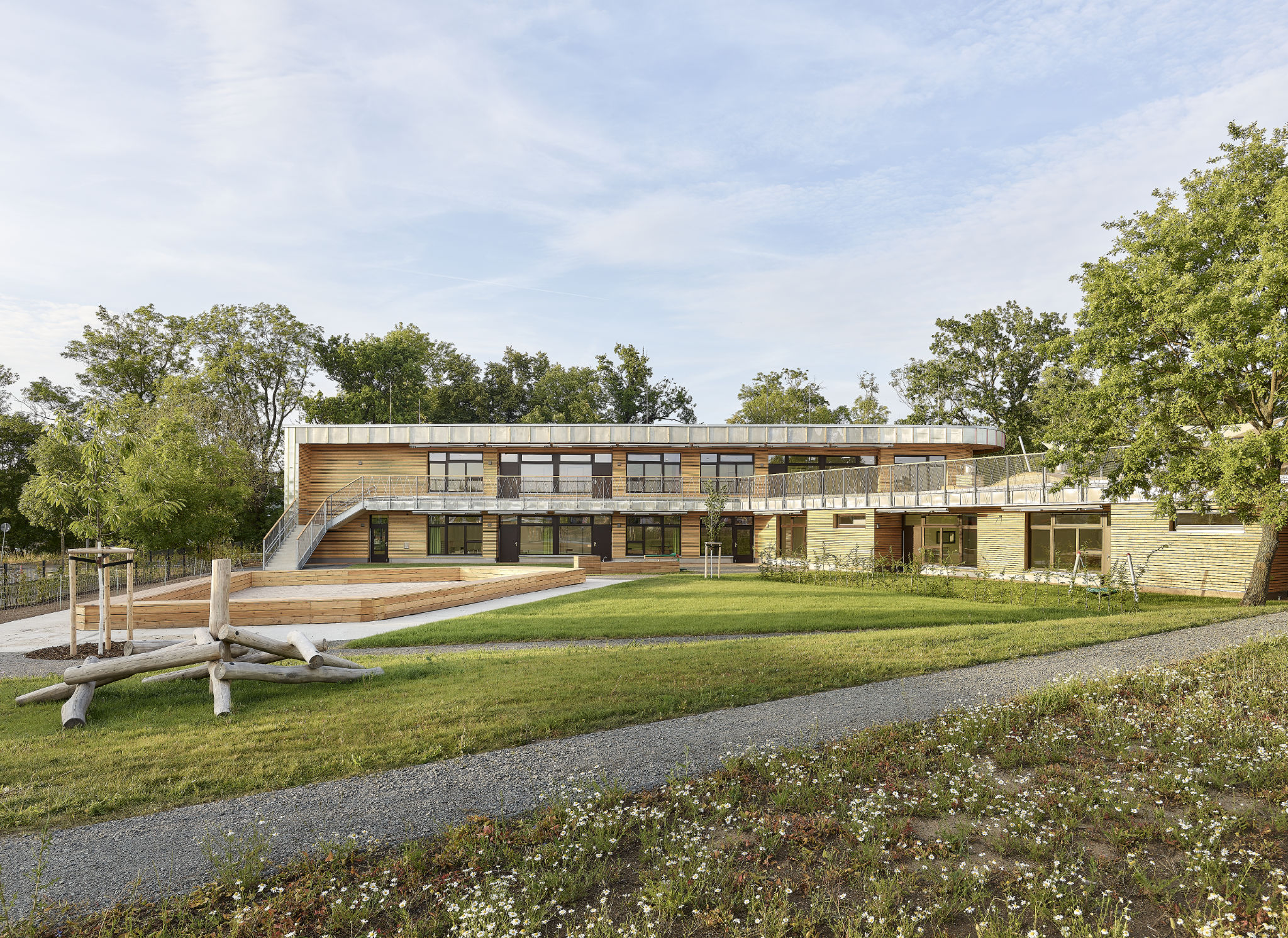 Die neu errichtete Kindertagesstätte ist für 156 Kinder ausgelegt, vollständig barrierefrei, inklusiv geplant und CO2-neutral im Betrieb.