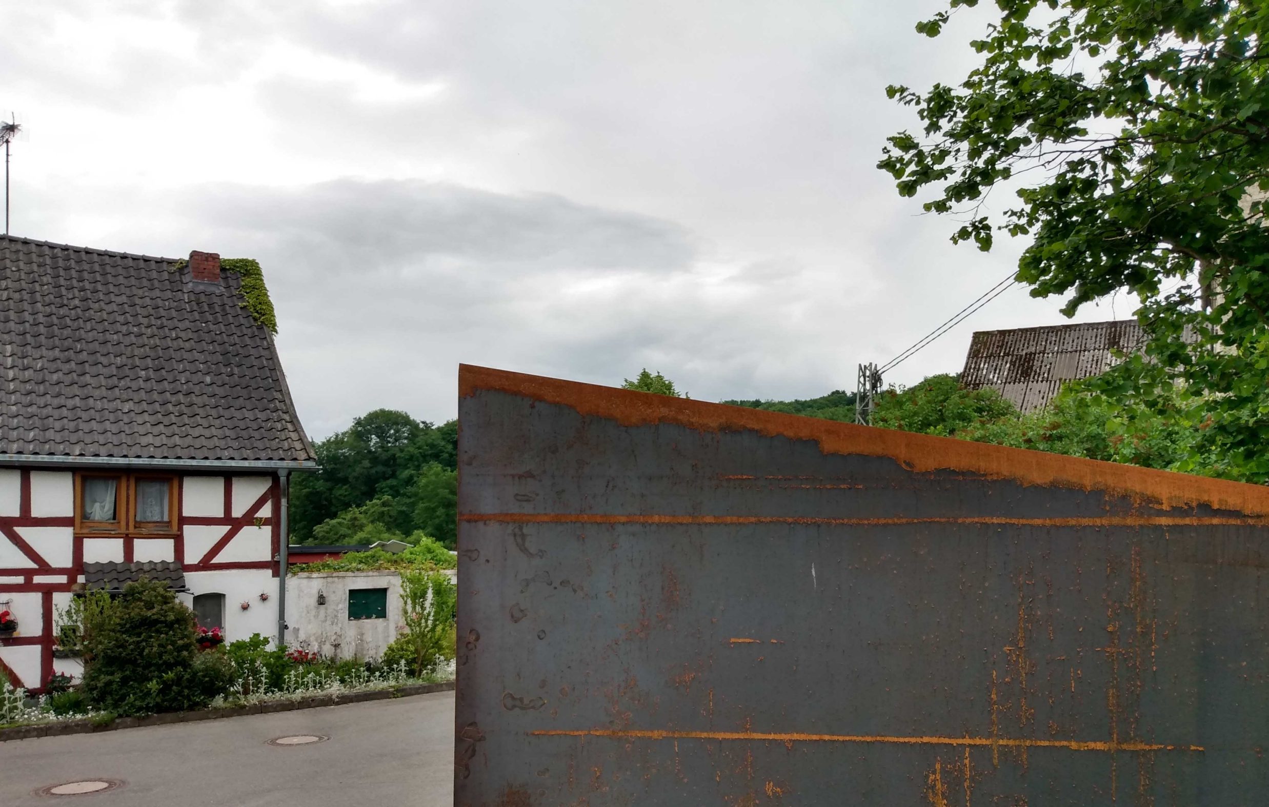 So wird die typische Form und Funktion alter Kameras zitiert. Im Vis-a-Vis mit den historischen Fachwerkhäusern und dem Blick übers dahinterliegende Tal entwickelt sich ein Wechselspiel aus Einblick und Ausblick, Panorama und Fokus. Passend dazu bieten wettergeschützte Holzbänke Sitzgelegenheiten mit verschiedenen Perspektiven. Die Innenseiten der rohen Wände werden als Träger für Text- und Bildmaterial zu Leben und Werk von August Sander genutzt.