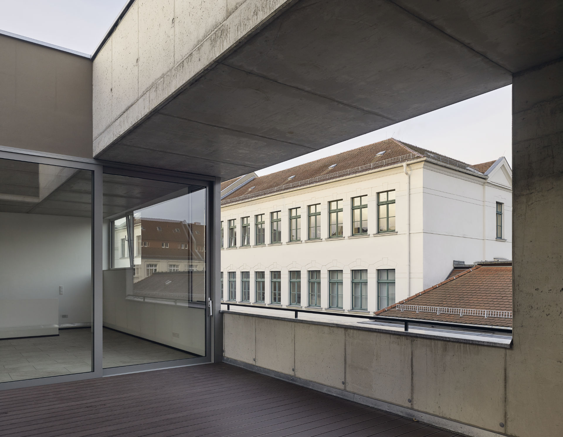 Lange Zeit endete die gründerzeitliche Blockzeile längs der Hähnelstraße mit einer Brandwand, an eine Baulücke. Diese wurde nun geschlossen, jedoch mit Rücksicht auf das alte freistehende Nachbargebäude. Entsprechender Abstand und die sich öffnende Kubatur lassen den nötigen Raum und spielen mit dem städtebaulichen Bruch.
